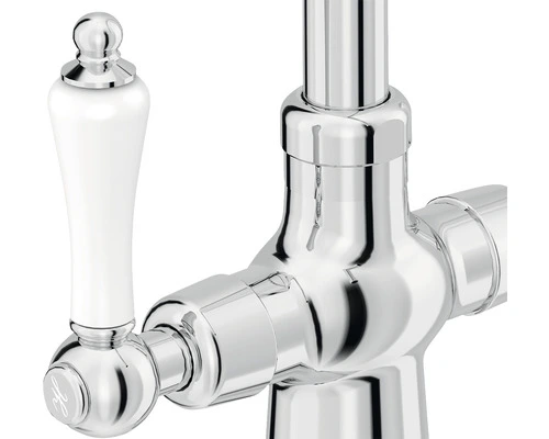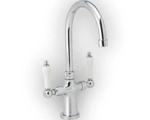 De elegant gebogen vorm van de hoge en draaibare uitloop geeft je spoelbak iets romantisch. Deze keukenkraan zorgt met zijn speelse ontwerp voor een traditioneel tintje in je keuken. Hij heeft niet alleen een klassiek effect, maar is ook comfortabel in het gebruik. Hij bestaat uit slechts enkele onderdelen, dus de montage neemt weinig tijd in beslag. De flexibele aansluitslangen passen zich zelfs in krappe ruimtes en elke bocht aan en gaan zonder problemen ook om dwarsliggers heen.