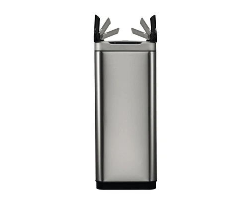Stijlvolle afvalbak van geborsteld RVS met fingerprint proof coating en kunststof binnenemmer. Het sensormechanisme voorzien van touch switch zorgt ervoor dat de afvalbak zowel d.m.v. een sensor als via de touch knoppen te openen en sluiten is. Door het slanke design uitermate geschikt voor smalle ruimten. Het geruisloos sluitend deksel opent in twee delen waardoor het gemakkelijk onder werkbladen past. De sensor zorgt voor een hygiënisch gebruik van de afvalbak. Door het afneembare deksel is de afvalzak eenvoudig te wisselen. Werkt op 6 AA batterijen (niet inbegrepen).
