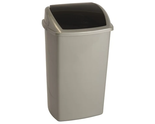 Kunststof afvalbak met swing deksel. Geschikt voor wandbevestiging.