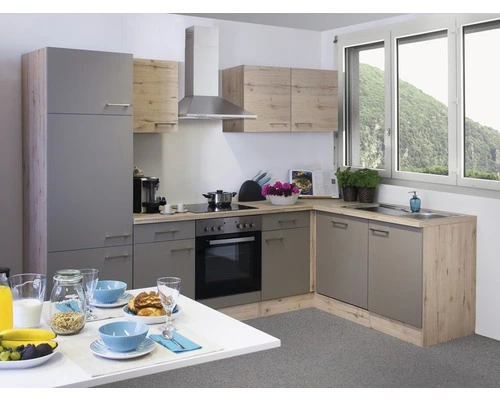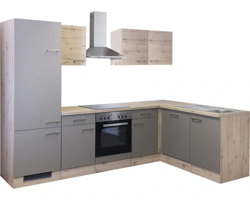 Flex-Well FLEX WELL Hoekkeuken Met Apparatuur Riva Kwartsiet Cubaniet En San Remo Eiken Licht Mat 280×170 Cm